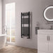 A modern straight heated towel rail in matt black. Designed to keep towels warm while adding a stylish vertical feature to your bathroom. High‑quality construction ensures excellent heat output and durability.