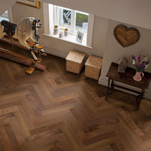 Elka Herringbone Dark Smoked Oak UV Oiled 14mm Engineered Flooring ELKA14HBDSOAK
