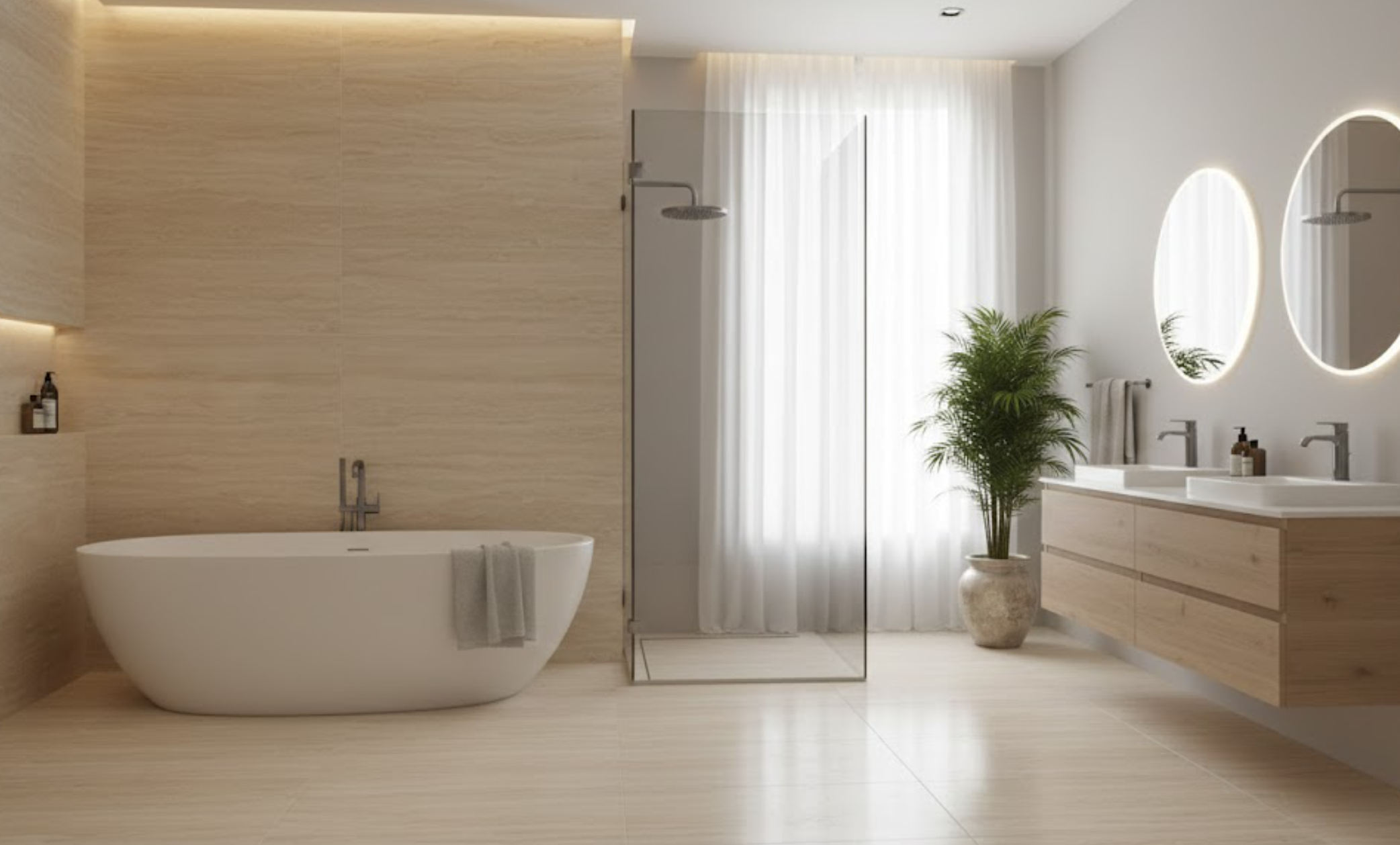 Whether it's a small bathroom floor, shower room walls or even a kitchen floor then the versatile Traver Beige Matt porcelain wall and floor tile can be all things for all projects.
