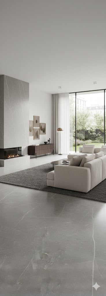 A textured grey surface and subtle light markings inspired by natural stone. On top of adding a comforting and homely warmth, it is an excellent choice for a modern contemporary look with textured design.