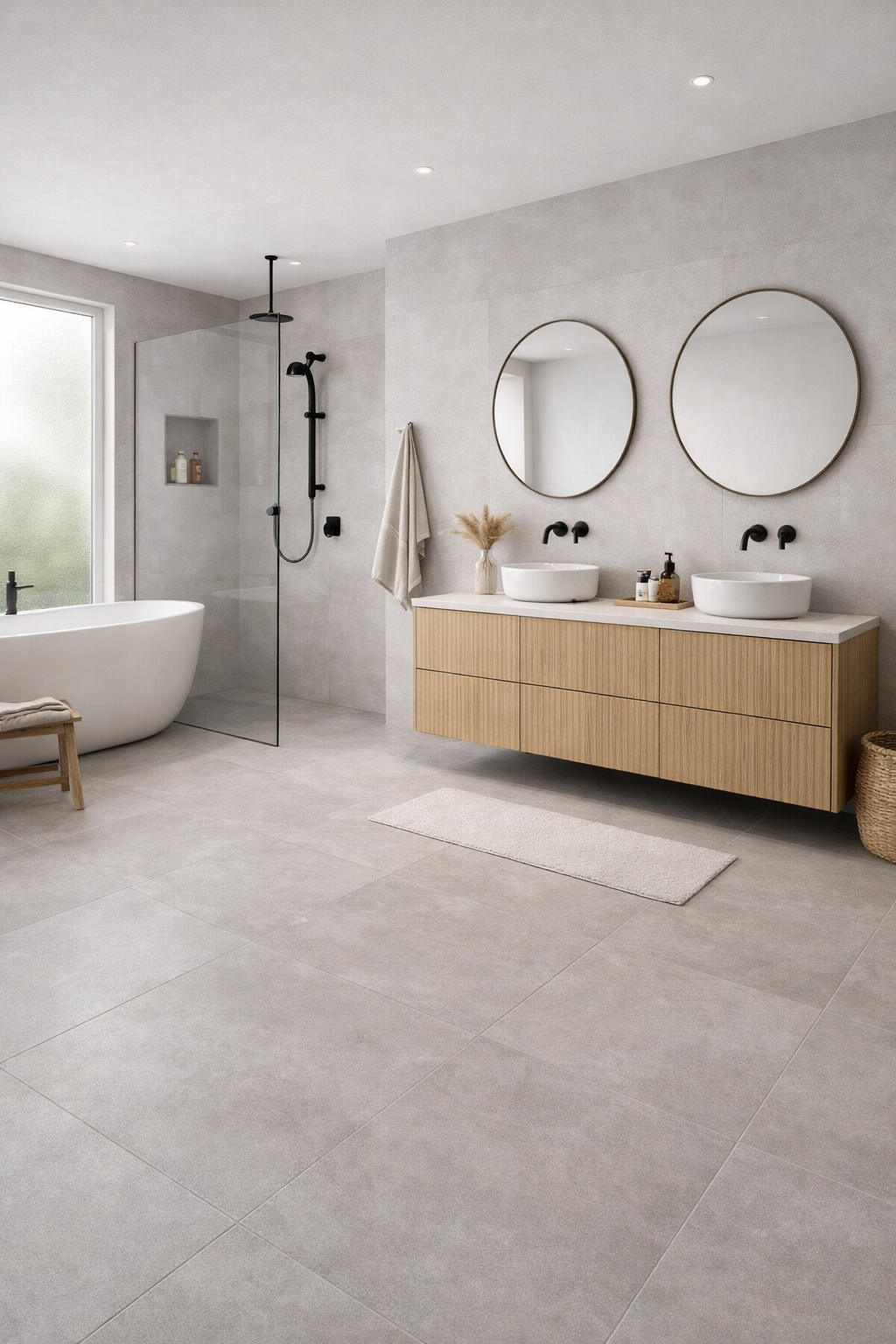 Highly versatile for both floor and wall installation, it works perfectly across bathrooms, kitchens, kitchen apron backsplashes, entry halls and open plan living spaces. Its soft warm neutral palette pairs effortlessly with natural wood finishes, matte black or brushed brass hardware, and all interior design styles.