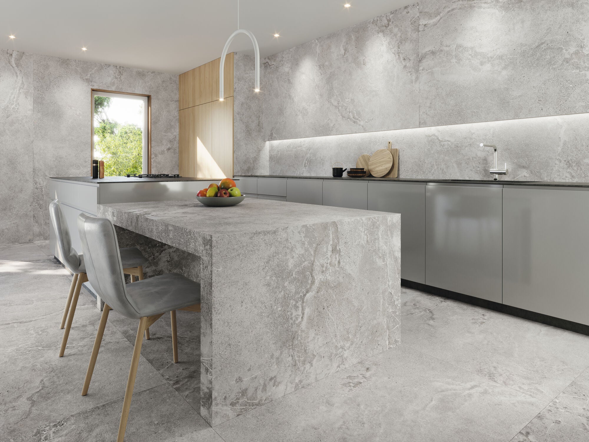 The DOME Collection delivers a refined concrete/stone look in a contemporary 260x120 format, ideal for modern bathrooms, living areas, kitchens and commercial interiors. With soft shading, gentle movement and a matt, architectural finish, DOME creates calm, seamless surfaces with an urban yet timeless feel.