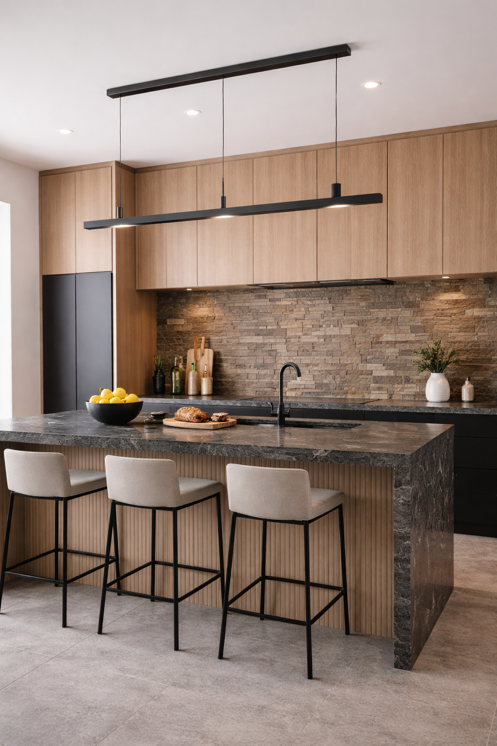 An assortment of textured dark brown shades and has a lovely rustic vibe. Accompanies the room with a sense of warmth and comfort.